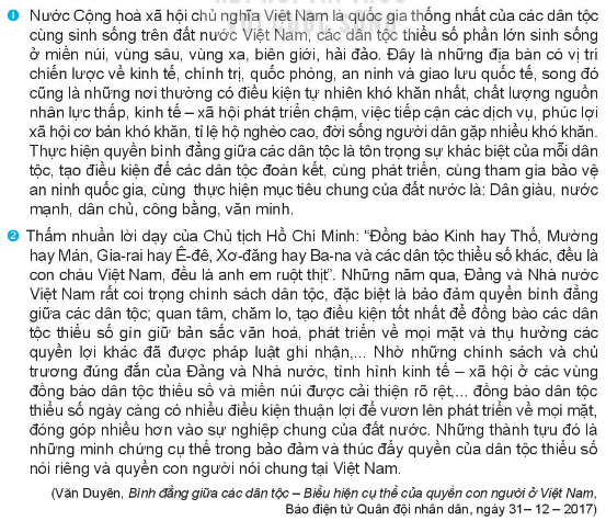 Đọc thông tin và chỉ ra quyền bình đẳng giữa các dân tộc trong thông tin đó.