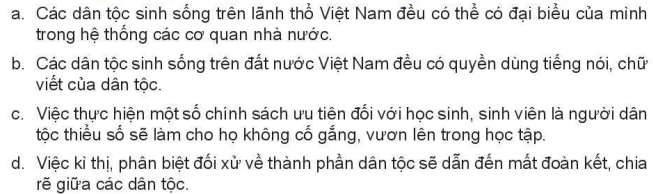 Em hãy chỉ ra quyền bình đẳng giữa các dân tộc trong thông tin sau:
