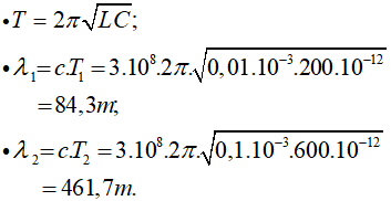 Mạch chọn sóng của một máy thu vô tuyến điện dung của tụ điện có thể điều chỉnh từ 200pF đến 600pF và độ tự cảm của cuộn dây có thể điều chỉnh từ 0,01mH đến 0,1mH. Bước sóng điện từ trong không khí mà máy có thể thu được: