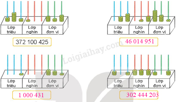 Quan sát hình vẽ để xác định thứ tự ghép của các mảnh ghép. Từ đó xác định được số có chín chữ số và lớp triệu, lớp nghìn, lớp đơn vị.