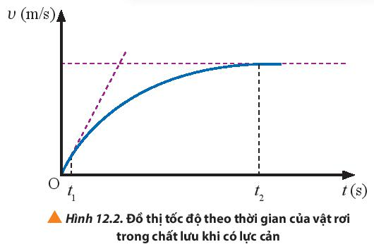 1. Xét một vật rơi trong không khí có đồ thị tốc độ rơi theo thời gian được biểu diễn trong Hình 12.2.