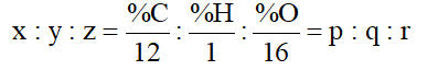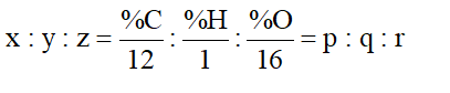 Thiết lập công thức đơn giản nhất bằng cách lập tỉ lệ x : y : z ở dạng số nguyên tối giản p : q : r như sau: