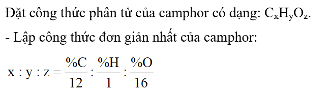 Đặt công thức phân tử của camphor có dạng: CxHyOz.