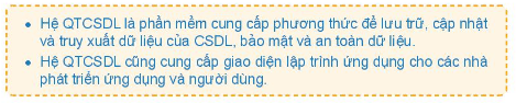 Vận dụng kiến thức về các chức năng của hệ QTCSDL để trả lời câu hỏi.