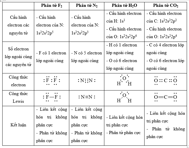 b) Hãy cho biết phân tử nào chứa liên kết cộng hóa trị phân cực và phân tử nào chứa liên kết cộng hoá trị không phân cực, phân tử nào phân cực và phân tử nào không phân cực.