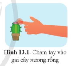Quan sát hình 13.1 và cho biết: Khi tay bị chạm vào gai trên cây xương rồng thì phản ứng của tay sẽ như thế nào?