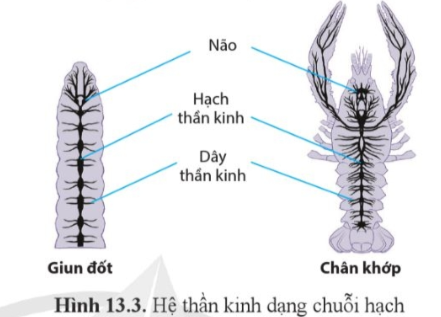 Quan sát hình 13.3 và nêu đặc điểm cấu tạo của hệ thần kinh dạng chuỗi hạch.