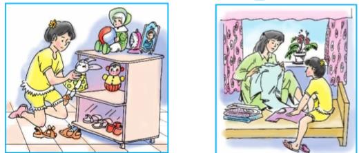 Em thường giúp đỡ bố mẹ quét nhà, lau bàn ăn….