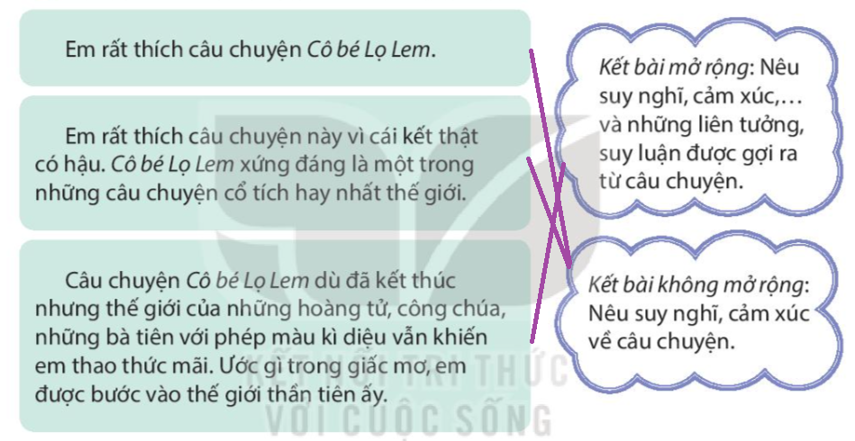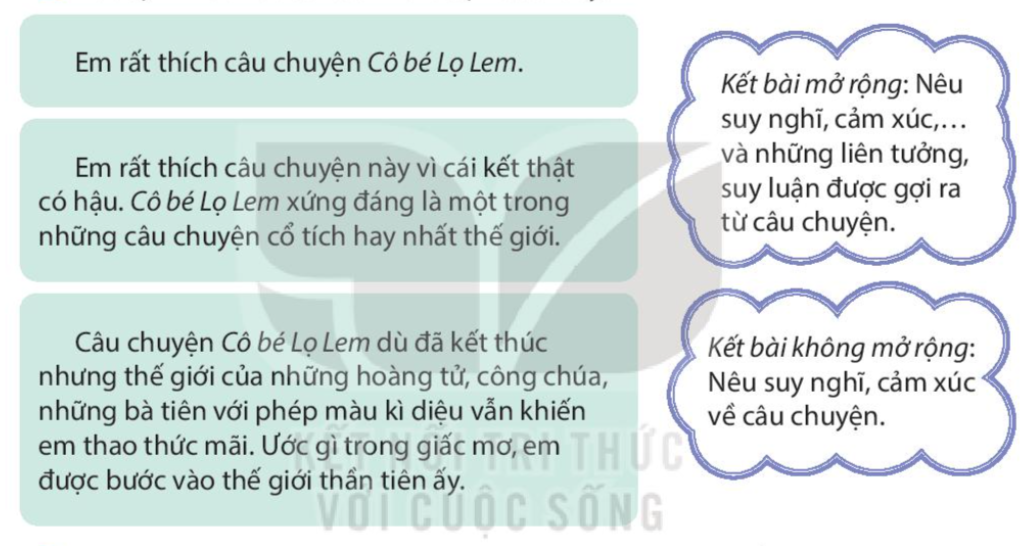 Xếp các mở bài dưới đây vào nhóm thích hợp. Xác định kiểu kết bài của mỗi đoạn dưới đây. Viết mở bài gián tiếp và kết bài mở rộng cho bài văn kể lại câu chuyện Cô bé Lọ Lem. Kể cho người thân nghe câu chuyện Con vẹt xanh và chia sẻ với người thân cảm nghĩ của em về câu chuyện.