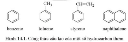 Benzene, toluene, styrene và naphthalene là những hydrocarbon thơm (arene) có công thức cấu tạo như ở Hình 14.1: