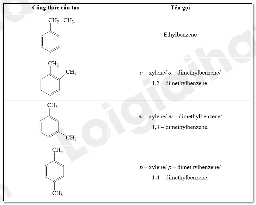 Công thức cấu tạo và tên gọi của các hydrocarbon thơm có công thức phân tử C8H10: