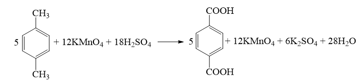 Terephthalic acid (p-HOOCC6H4COOH) là nguyên liệu để sản xuất poly(ethylene terephthalate) (PET, loại polymer quan trọng, được sử dụng làm sợi dệt và chai nhựa,..). Viết phương trình hoá học của phản ứng điều chế terephthalic acid từ p-xylene.