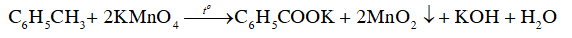 + Phản ứng giữa toluene và thuốc tím xảy ra ở nhiệt độ cao, không xảy ra ở nhiệt độ thường.