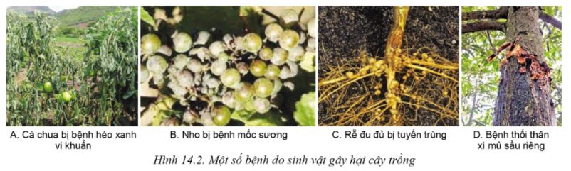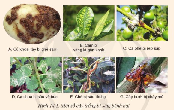 Quan sát Hình 14.1 và cho biết hình ảnh nào là cây trồng bị bệnh hại. Vì sao?