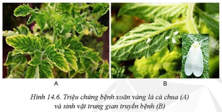 Quan sát Hình 14.6 và mô tả triệu chứng của bệnh xoăn vàng lá cà chua.