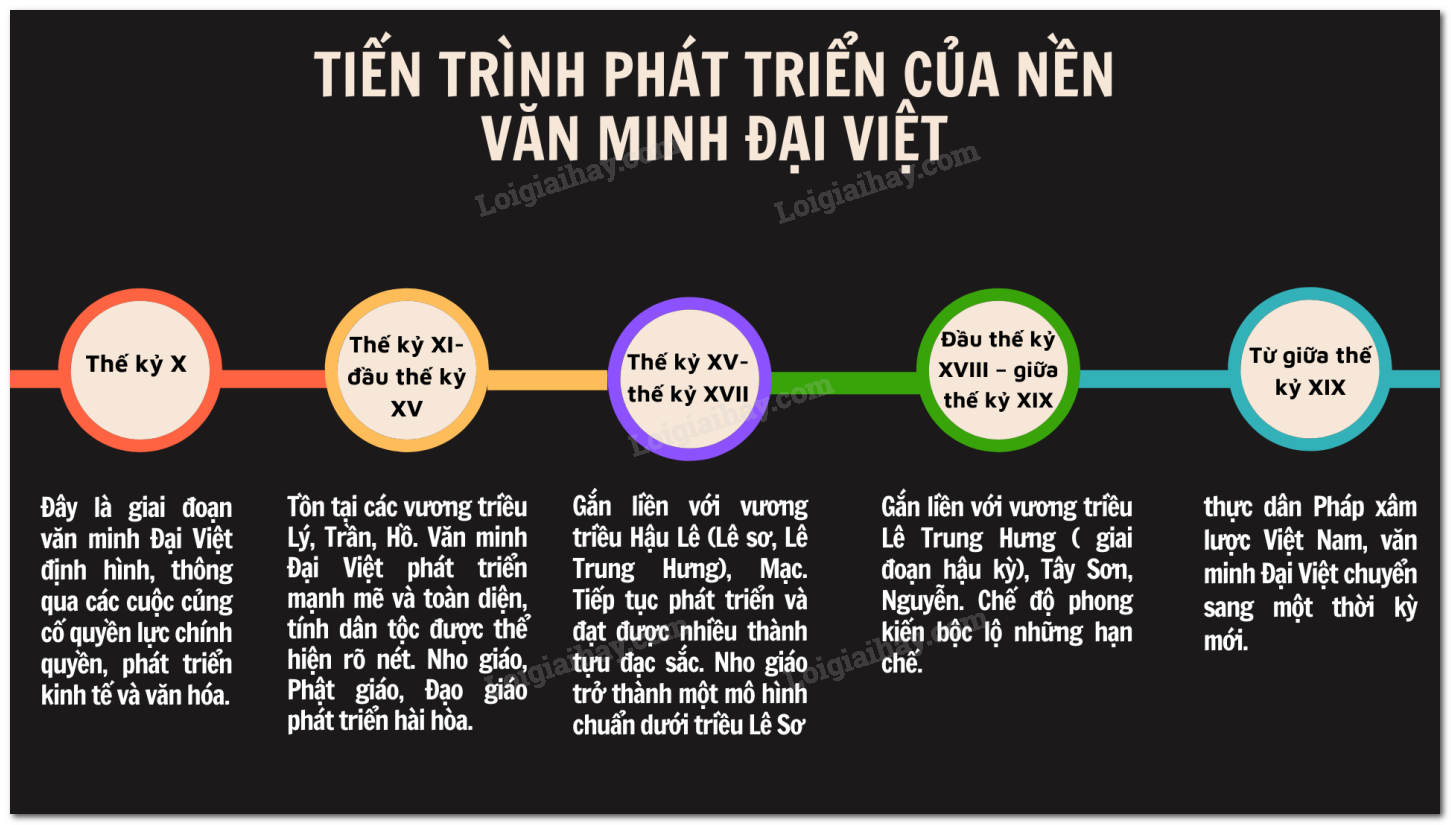 – Trình bày quá trình phát triển của nền văn minh Đại Việt trên trục thời gian.