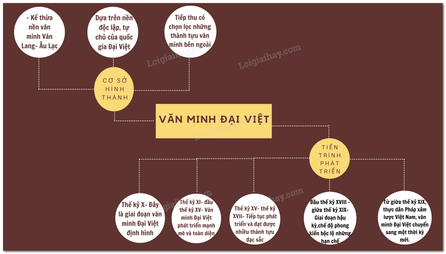 Vẽ sơ đồ tư duy về cơ sở hình thành và quá trình phát triển của nền văn minh Đại Việt.