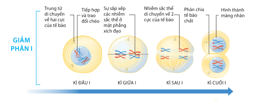 Câu 1: Giảm phân I có các kì nào? Nhiễm sắc thể biến đổi như thế nào ở kỉ đấu I?