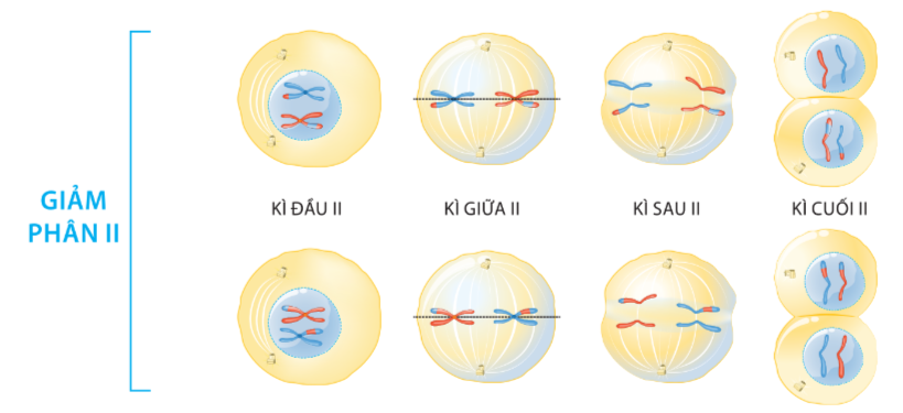 Câu 4: Kết quả của giảm phân II là gì? So sánh bỏ nhiễm sắc thể của tế bào được tạo ra sau giảm phân 1 và giảm phân II –