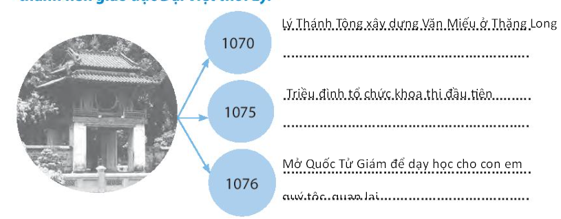 Hoàn thành sơ đồ tư duy dưới đây về những sự kiện góp phần hình thành nền giáo dục Đại Việt thời Lý.
