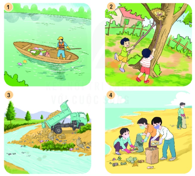 – Phá tổ chim, đổ rác thải xuống sông ngòi: Đây là những việc làm phá hoại môi trường.