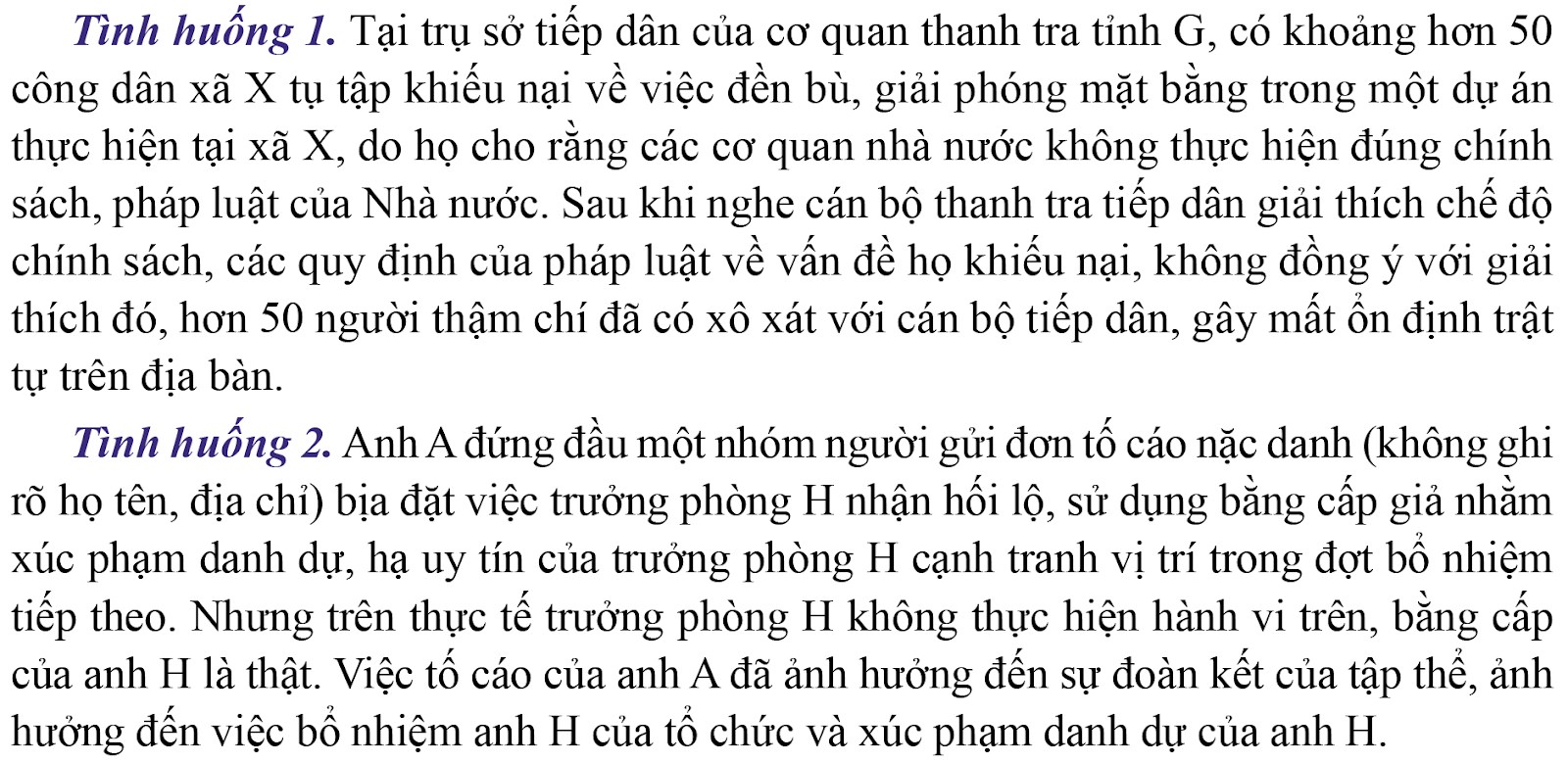 Trong các trường hợp dưới đây, chủ thể nào thực hiện đúng, chủ thể nào thực hiện chưa đúng quyền khiếu nại, tố cáo? Vì sao?