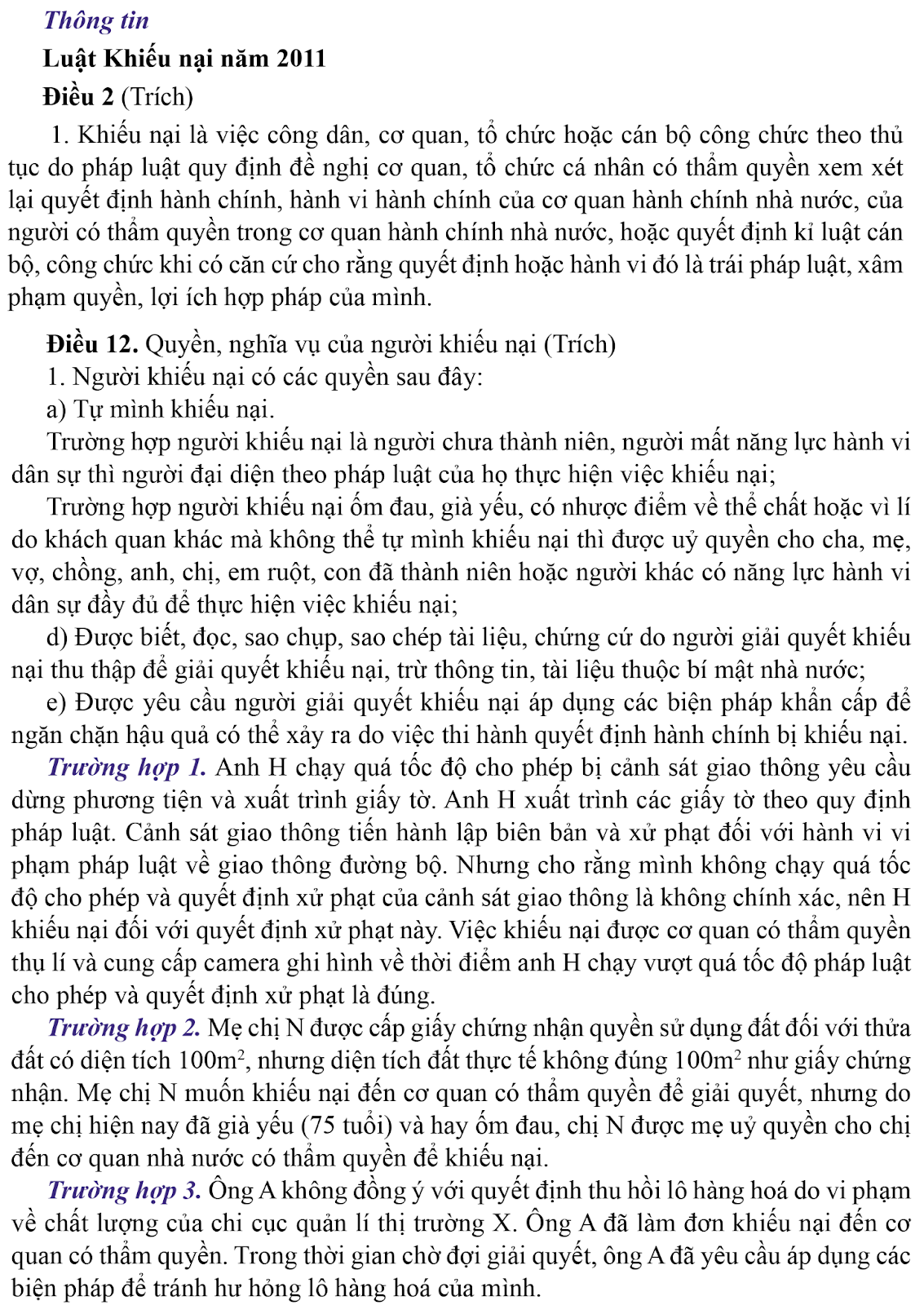 b. Nêu được khái niệm quyền khiếu nại của công dân