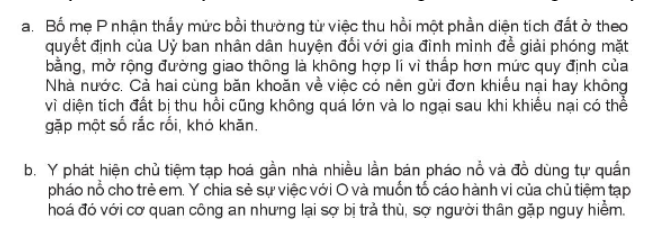 Em hãy đọc các thông tin, trường hợp sau và trả lời câu hỏi: