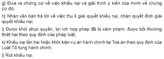 + Được quyền nhận các thông tin liên quan đến quá trình giải quyết khiếu nại trừ những nội dung thuộc bí mật nhà nước.