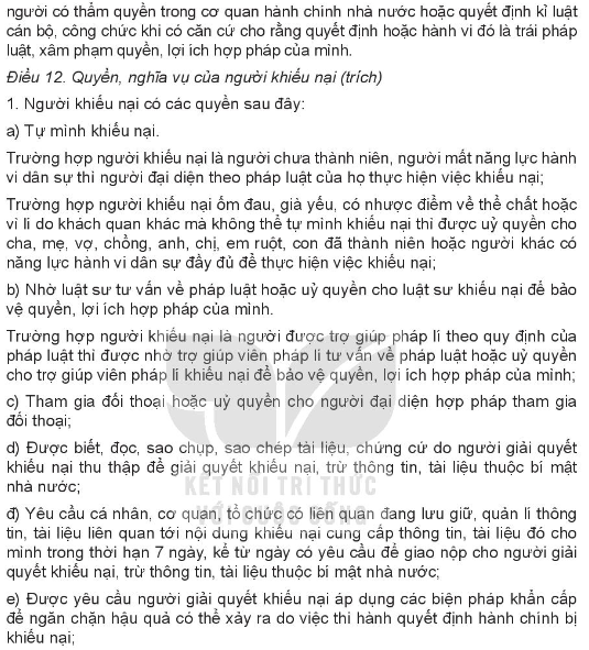 + Được quyền nhận các thông tin liên quan đến quá trình giải quyết khiếu nại trừ những nội dung thuộc bí mật nhà nước.