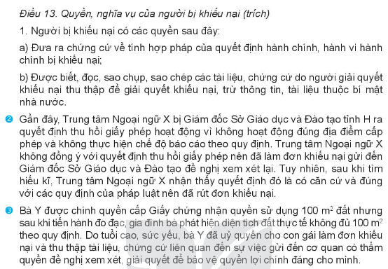 2/ Nêu được ý nghĩa các quy định của pháp luật về quyền của công dân về khiếu nại. Lấy ví dụ về việc thực hiện tốt quyền của công dân về khiếu nại trong đời sống.