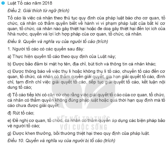 2/ Nêu được ý nghĩa các quy định của pháp luật về quyền của công dân về tố cáo. Lấy ví dụ về việc thực hiện tốt quyền của công dân về tố cáo trong đời sống thực tiễn.