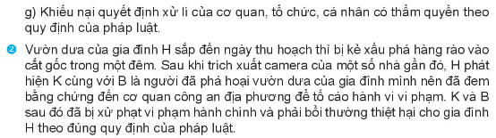 1/ Trong trường hợp 2, H đã thực hiện quyền của công dân về tố cáo bằng việc thu thập bằng chứng về hành vi sai phạm của K và B sau đó đem đến cơ quan chức năng để đề nghị can thiệp giải quyết. Gia đình H được nhận bồi thường thiệt hại theo quy định của pháp luật từ K và B.
