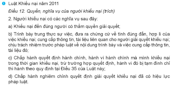 – Tự giác thực hiện quyền và nghĩa vụ của công dân về khiếu nại, tố cáo bằng những việc làm phù hợp năng lực, độ tuổi.