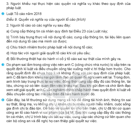 Đọc các trường hợp và phân tích trường hợp để chỉ ra được chủ thể đã thực hiện đúng hay vi phạm quyền và nghĩa vụ của công dân về khiếu nại, tố cáo. Giải thích.