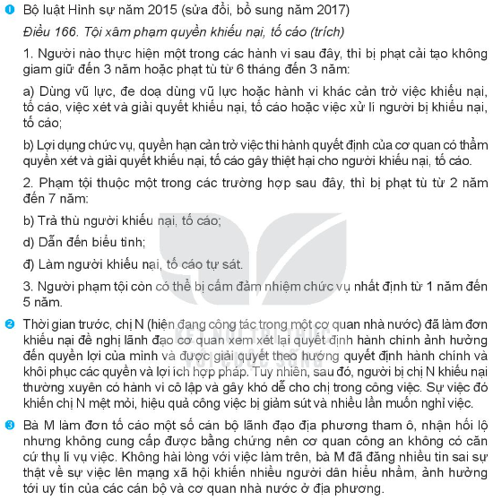 2/ Em hãy nêu ví dụ minh hoạ cho việc công dân thực hiện tốt nghĩa vụ về khiếu nại, tố cáo.