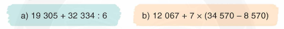 a) 19 305 + 32 334 : 6 = 19 305 + 5 389