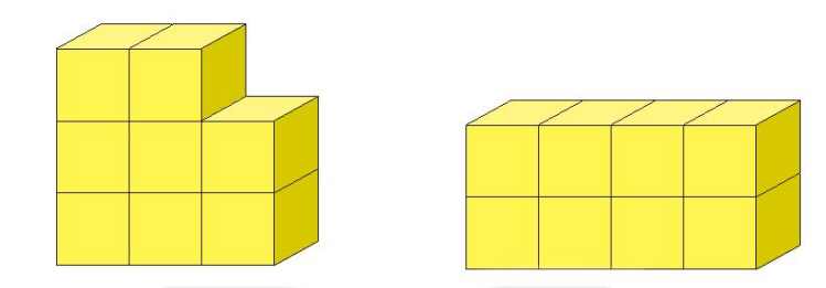 b) Hai hình có số khối lập phương nhỏ bằng nhau.