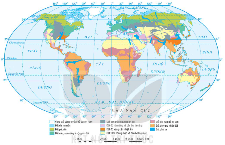 – Xác định phạm vi phân bố của đất đài nguyên, đất pốt dôn, đất đen thảo nguyên ôn đới, đất đỏ vàng nhiệt đới, đất xám hoang mạc và bán hoang mạc.