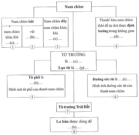 a) Điền nội dung thích hợp vào những chỗ … có kí hiệu (a), (b), …, (k).
