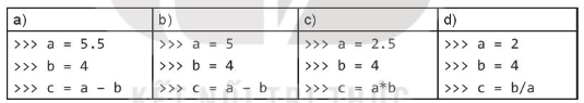 Câu lệnh thứ 5 sai vì vế bên phải biến c là dữ liệu kiểu xâu kí tự nên không thể tham gia trong phép toán số học với biến b là dữ liệu kiểu số thực.