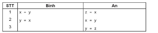 Trong bài tập lập trình yêu cầu đối giá trị của hai biến x, y được cho trước hai bạn Bình và An đã làm như sau