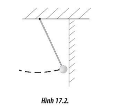 Một quả bowling được treo lên trần nhà bằng một sợi dây không dãn. Một bạn học sinh được thực hiện thí nghiệm biểu diễn bằng cách kéo quả bóng ra khỏi vị trí cân bằng của nó và gần chạm vào tường, sau đó thả quả bóng ra như Hình 17.2.