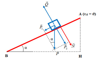Độ biến thiên thế năng của xe trong trọng trường khi nó di chuyển từ A đến B: