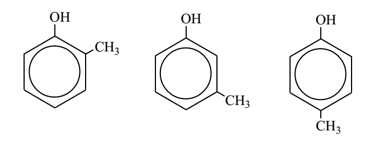 b) Thí nghiệm chứng tỏ A không tan trong nước, A tác dụng với NaOH, vậy A là phenol. Công thức cấu tạo của A là một trong số ba công thức cấu tạo sau: