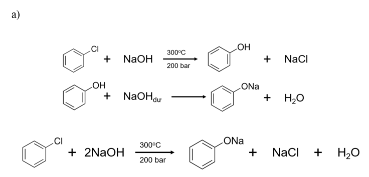 a) Viết phương trình hoá học của phản ứng xảy ra khi đun nóng hỗn hợp chlorobenzene và dung dịch  đặc, dư ở nhiệt độ 300C áp suất 200 bar.