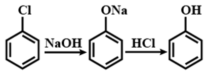 Cho biết ở điều kiện nhiệt độ và áp suất cao, xảy ra phản ứng thế nguyên tử halogen (liên kết trực tiếp với vòng benzene) bằng nhóm -OH