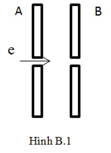 Bắn một electron với vận tốc đầu rất nhỏ vào một điện trường đều giữa hai bản kim loại phẳng theo phương song song với các đường sức điện ( hình B.1). Electron được tăng tốc trong điện trường. Ra khỏi điện trường, nó có vận tốc bằng 107 m/s. Tính hiệu điện thế giữa UAB giữa hai bản. Điện tích của electron -1,6.10-19 C. Khối lượng của electron là 9,1.10-31 kg.