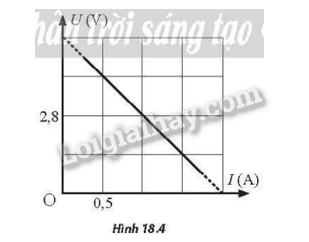 Trong việc thiết kế các mạch điện, để có được các suất điện động thích hợp người ta thường tiến hành ghép các nguồn có sẵn thành các bộ nguồn có suất điện động cần thiết. Xét bốn pin giống nhau được mắc nối tiếp thành bộ nguồn, rồi mắc hai đầu một biến trở vào hai đầu bộ nguồn thành mạch kín. Điều chỉnh giá trị biến trở, đồ thị biểu diễn sự phụ thuộc của điện áp hai đầu bộ nguồn U vào cường độ dòng điện I trong mạch như Hình 18.4. Tìm suất điện động và điện trở trong của mỗi pin.