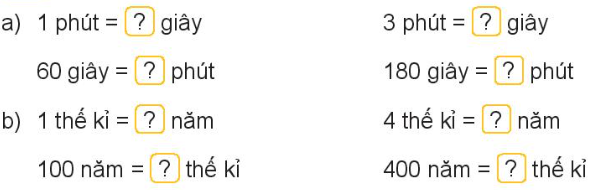 1 phút = 60 giây;  1 thế kỉ = 100 năm